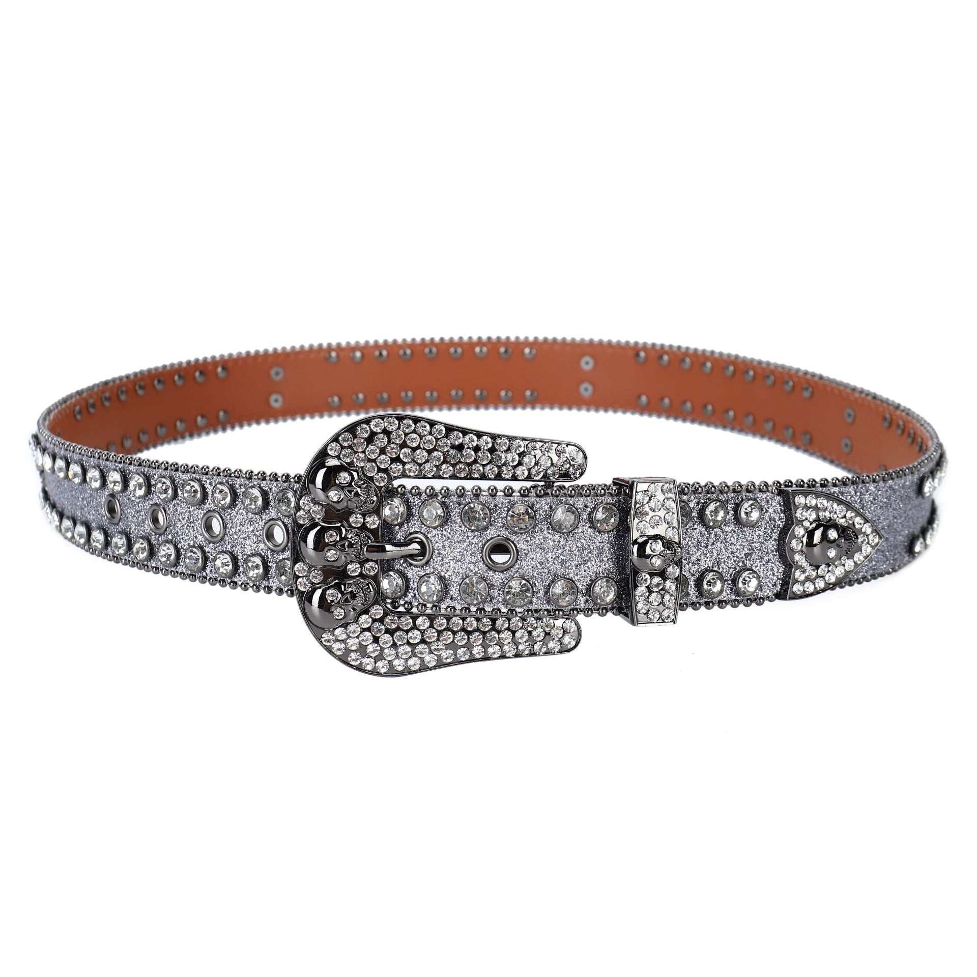 Look fierce and stylish wearing this Punk Riveted Rhinestone belt! This statement-making piece features a skull motif, sparkling rhinestones, and riveted metal details for an edgy finish.