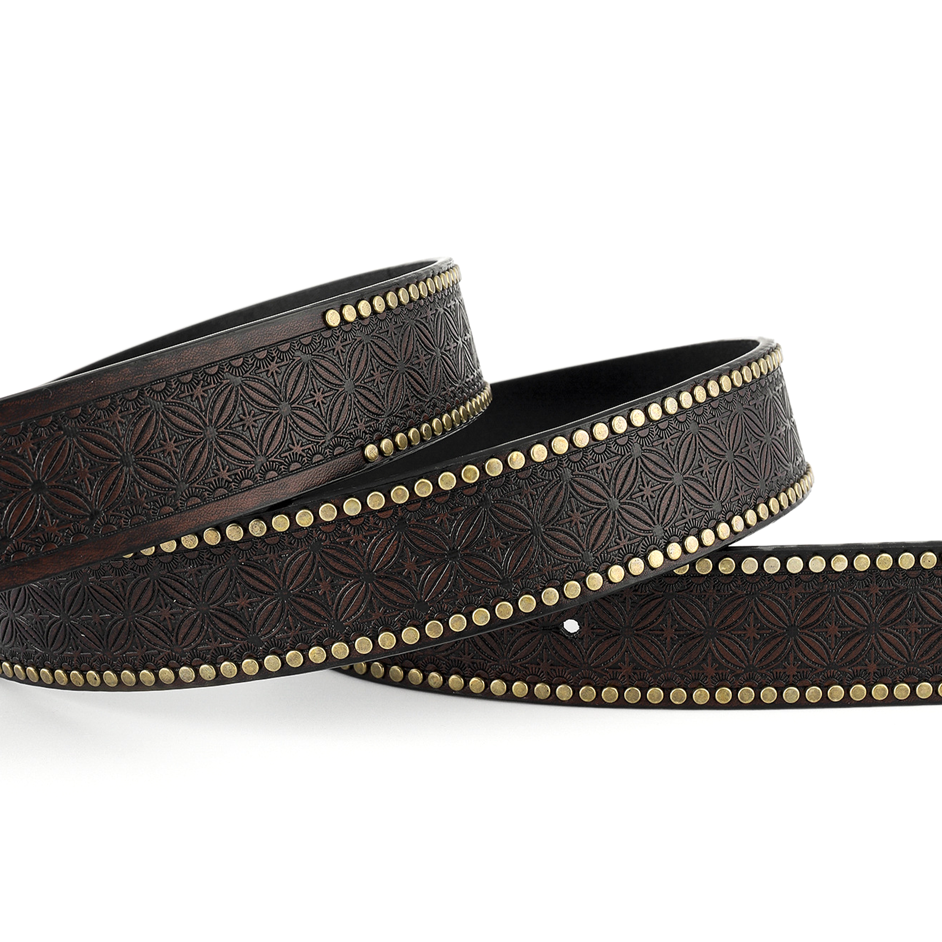 Unleash your inner cowboy and make a bold statement with our Premium Cowboy Buckle Leather Belt – the quintessential accessory for any wardrobe that calls for a touch of rugged charm. Expertly crafted with the adventurous spirit in mind, this belt isn't just a fashion statement, it's a testament to the timeless allure of the Wild West.