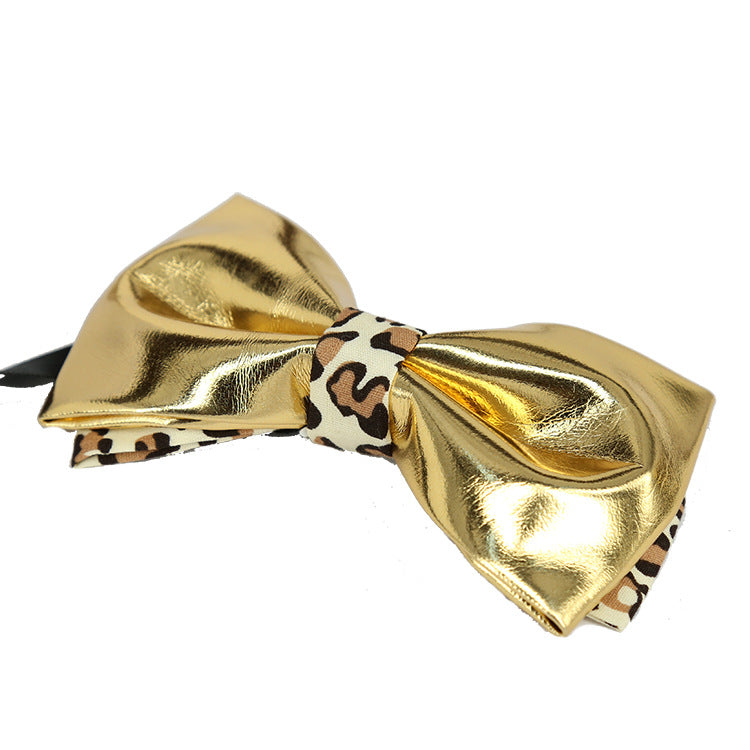 Lagoeo Leopard Print Gold Bow Tie T2003