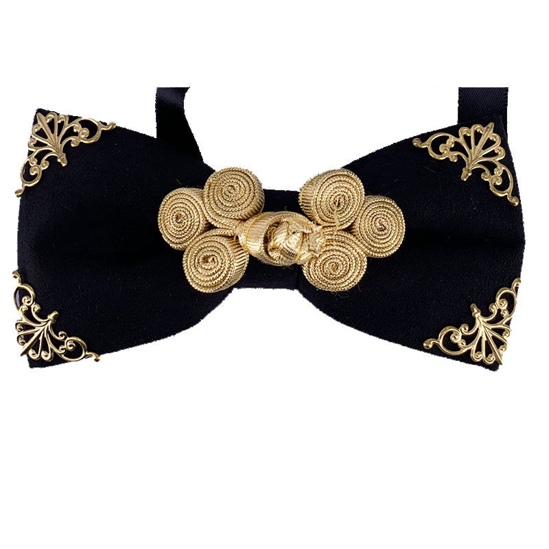 Crafted from luxurious fabrics, this bow tie is accentuated with a striking metal edge, giving it an unparalleled level of style and durability. The unique metal detailing is not only a stylish accent but also ensures that your bow tie keeps its impeccable shape throughout the longest of events.