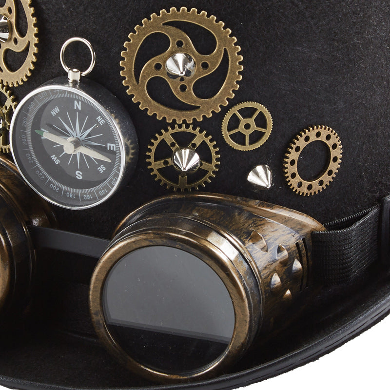 100% handmade hat, gears, rivet and decorative glasses crowning this creation.