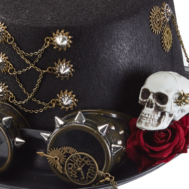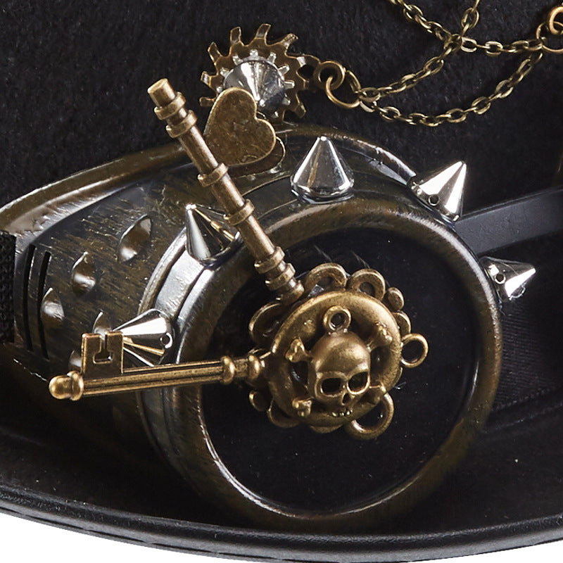 100% handmade hat, chain, gears, rivet and decorative glasses crowning this creation.