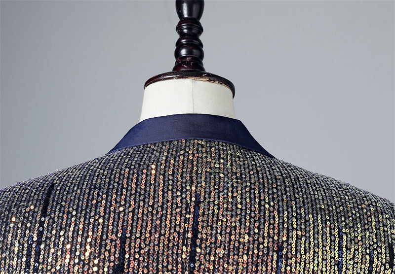 Lagoeo Sequins Tuxedo Party Overcoat S7019