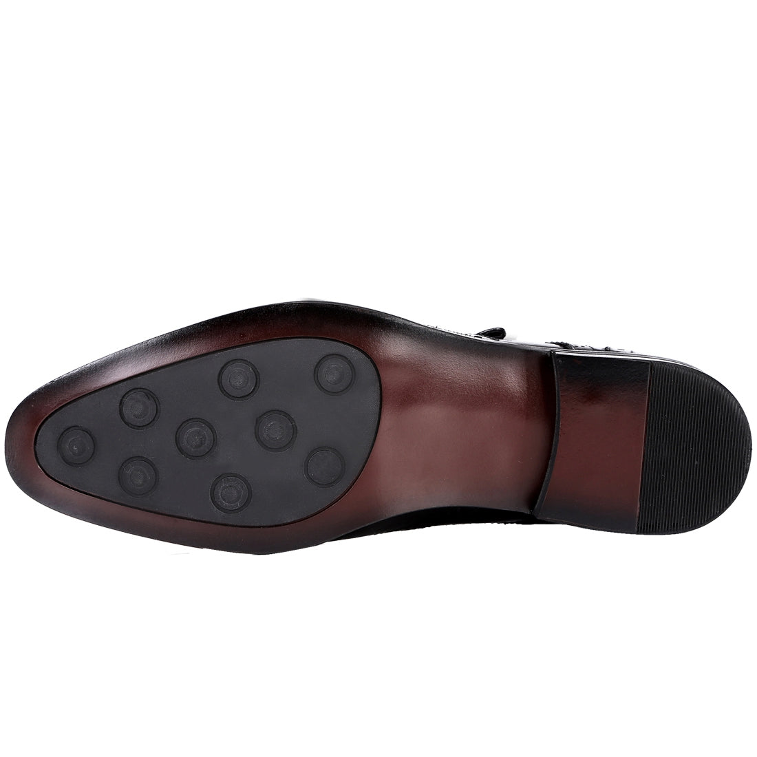 Step out in utmost style by sporting these appealing slip-on oxford shoes with a crocodile pattern. The leather made brogues for men have a pointed toe shape and have been made using genuine leather material. The full grain leather insole and lining will offer you comfort while the durable rubber outsole takes care of your comfort.