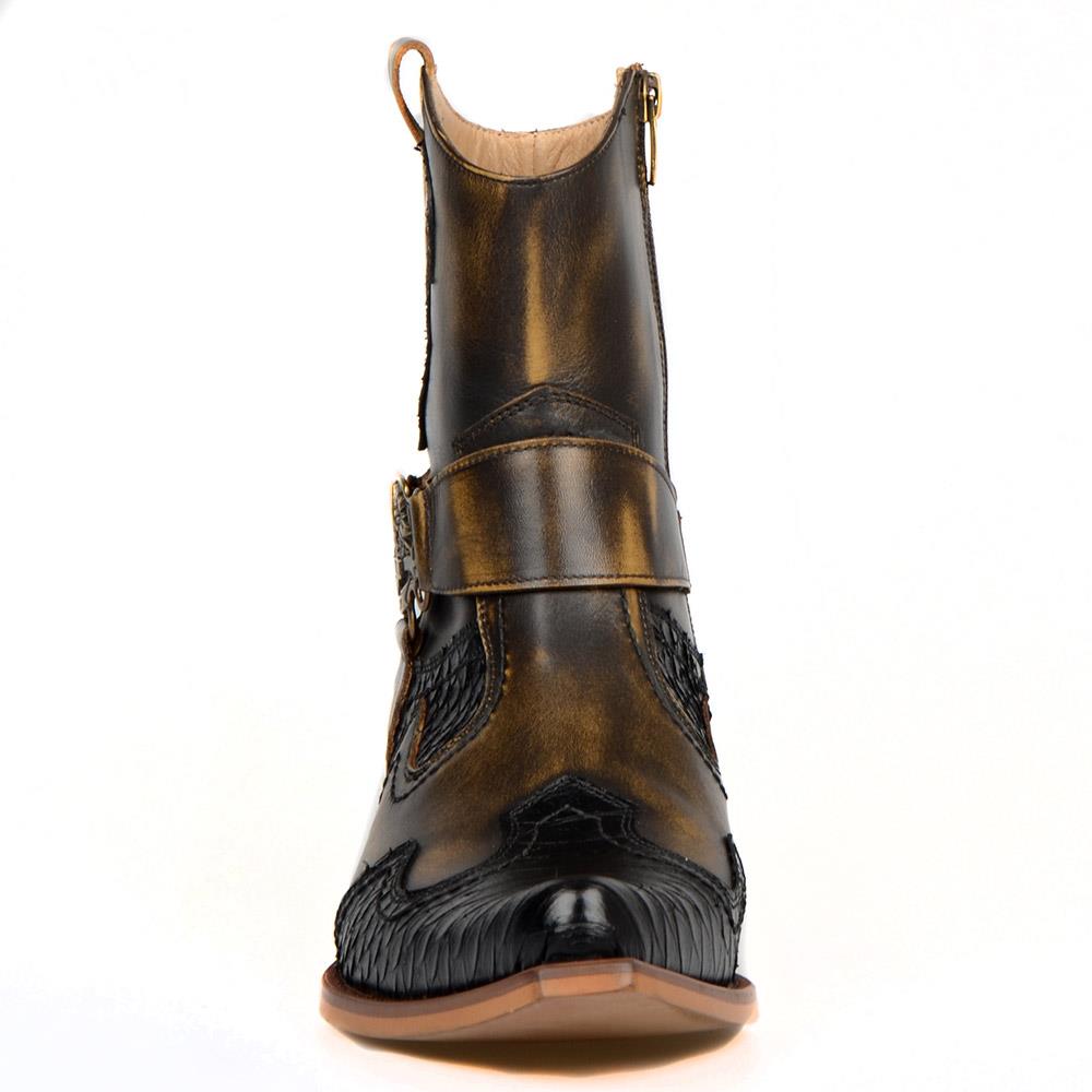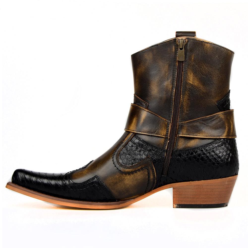 Brown leather with classic black, there is no shortage of trends in the classics, and the trim adds a western flair. Calf-Skin leather upper and soft leather lining cushioned insole, make a perfect balance between fashion and comfort.