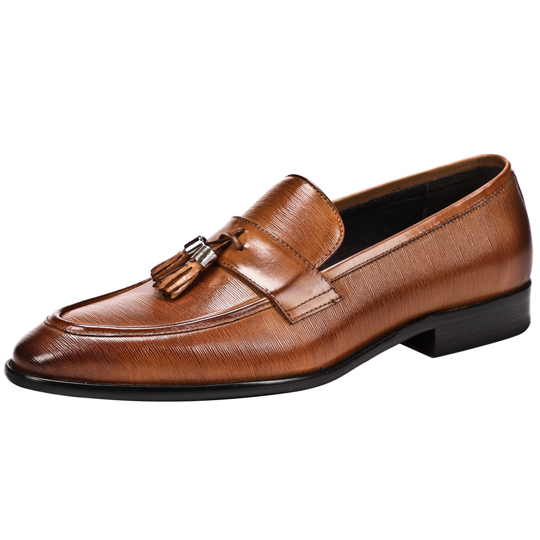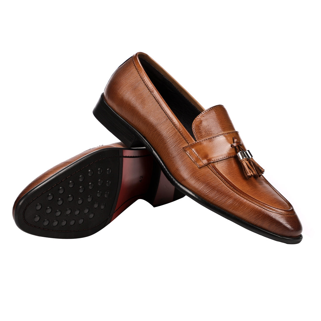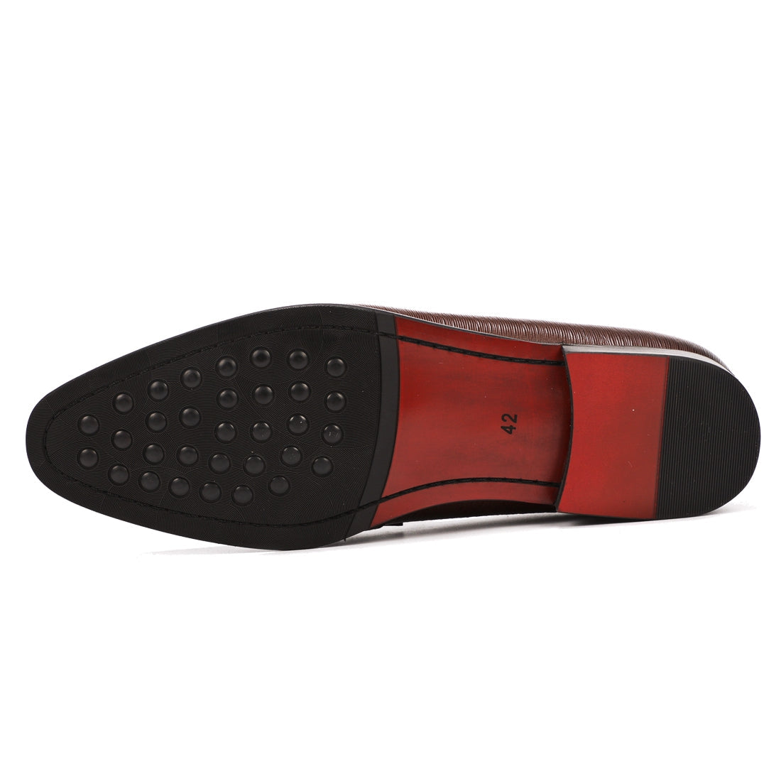 Step out in utmost style by sporting these appealing slip-on oxford shoes with a crocodile pattern. The leather made brogues for men have a pointed toe shape and have been made using genuine leather material. The full grain leather insole and lining will offer you comfort while the durable rubber outsole takes care of your comfort.