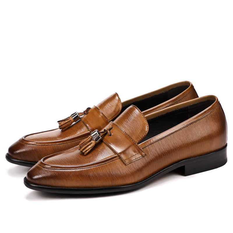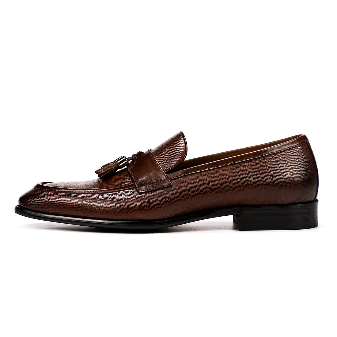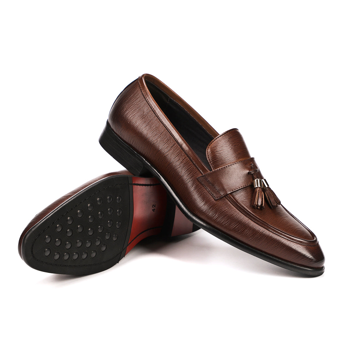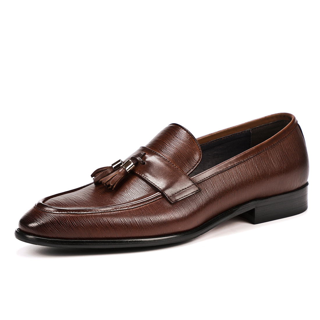 Step out in utmost style by sporting these appealing slip-on oxford shoes with a crocodile pattern. The leather made brogues for men have a pointed toe shape and have been made using genuine leather material. The full grain leather insole and lining will offer you comfort while the durable rubber outsole takes care of your comfort.
