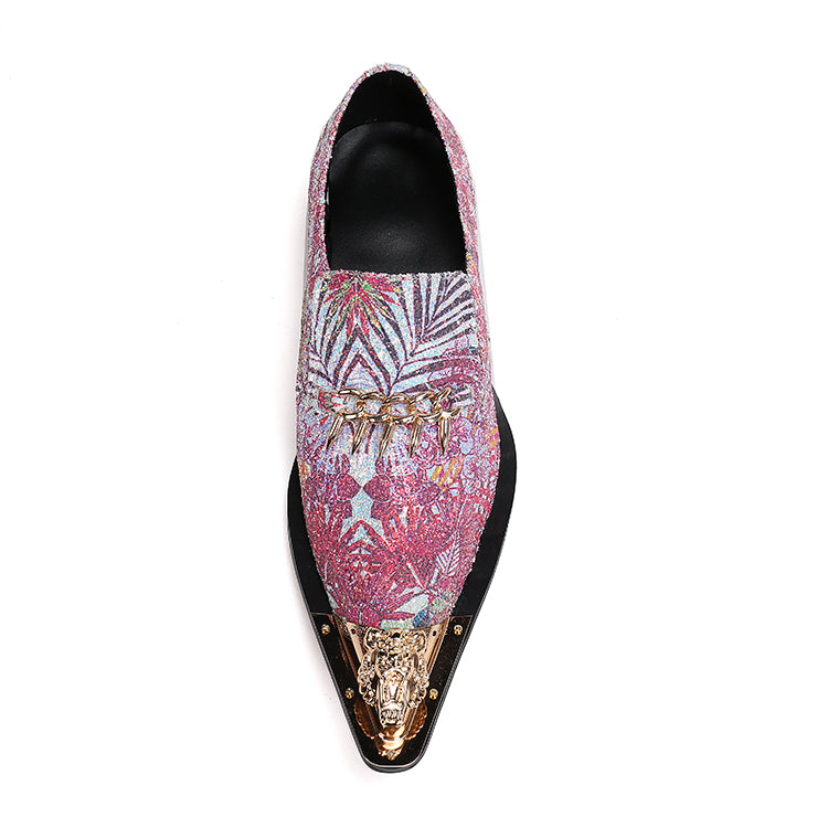 Step out in utmost style by sporting these appealing slip-on oxford shoes with a PUNK?pattern. The leather made brogues for men have a pointed toe shape and have been made using genuine leather material. The full grain leather insole and lining will offer you comfort while the durable rubber outsole takes care of your comfort.