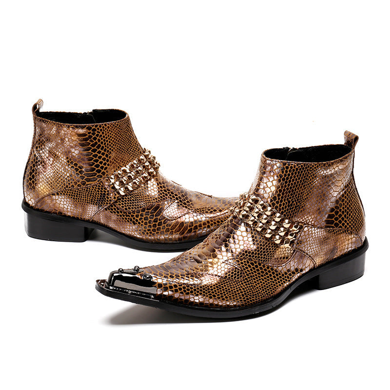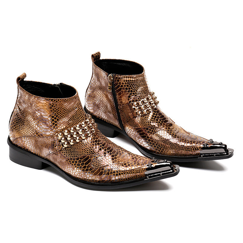 Step out in utmost style by sporting these appealing slip-on oxford shoes with a PUNK?pattern. The leather made brogues for men have a pointed toe shape and have been made using genuine leather material. The full grain leather insole and lining will offer you comfort while the durable rubber outsole takes care of your comfort.