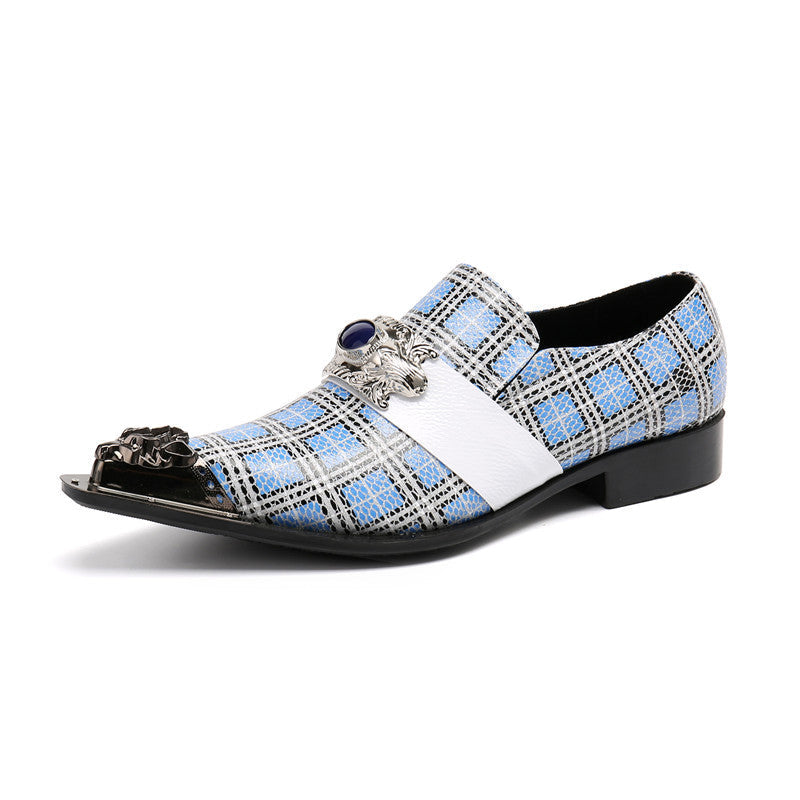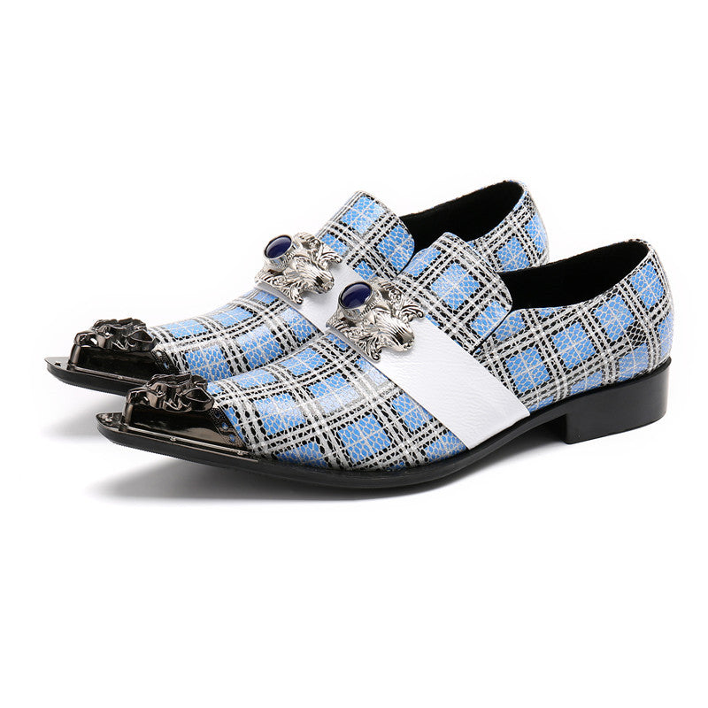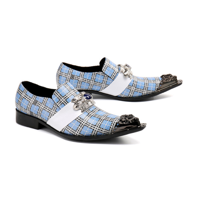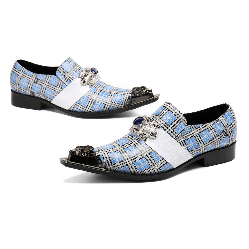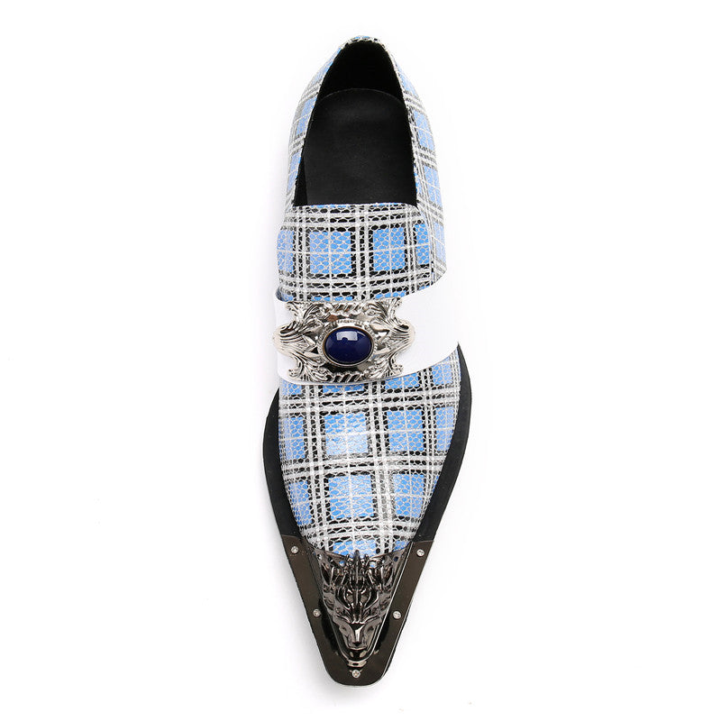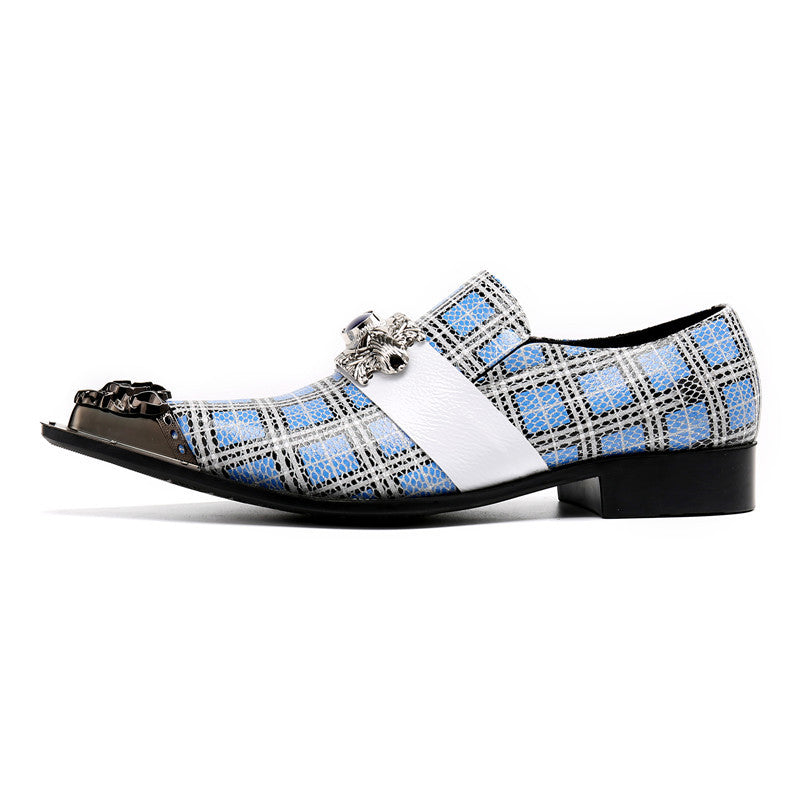 Step out in utmost style by sporting these appealing slip-on oxford shoes with a PUNK?pattern. The leather made brogues for men have a pointed toe shape and have been made using genuine leather material. The full grain leather insole and lining will offer you comfort while the durable rubber outsole takes care of your comfort.