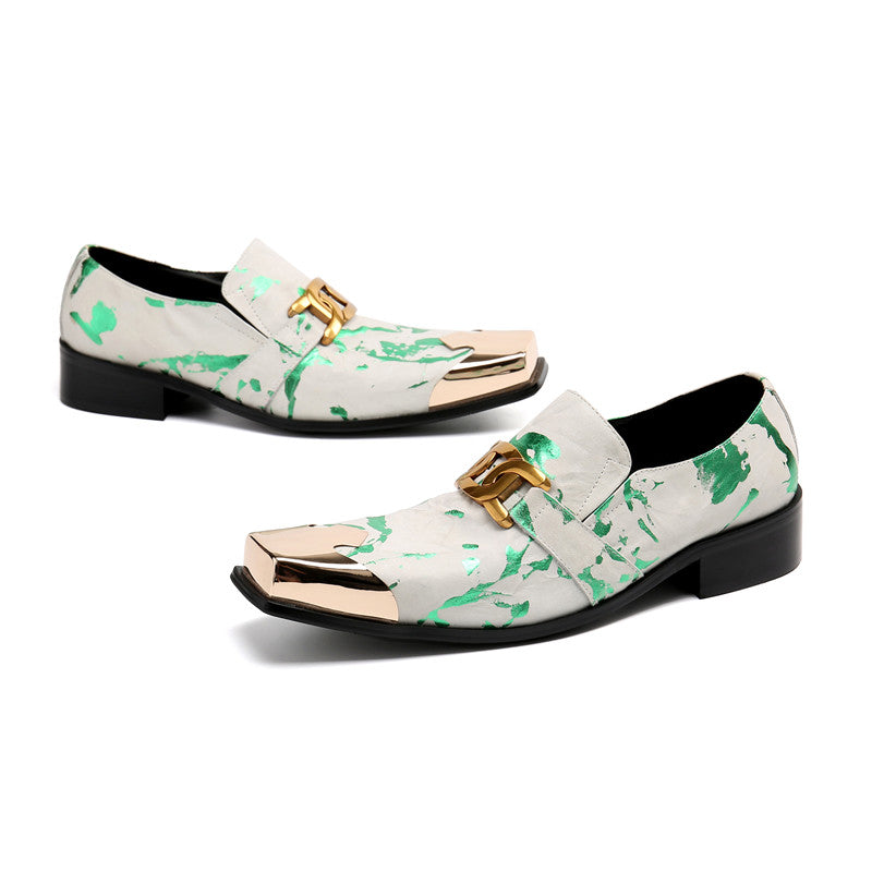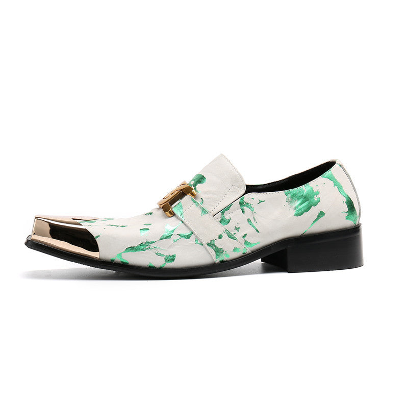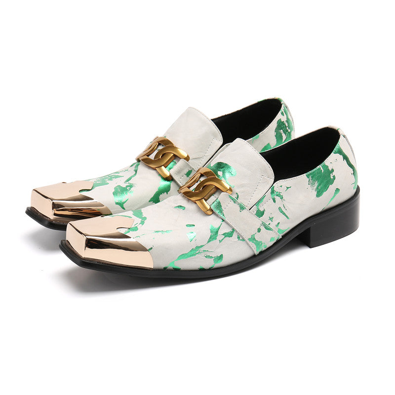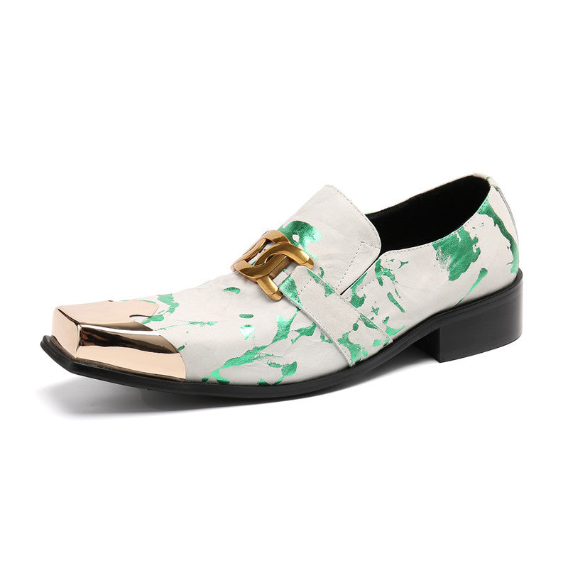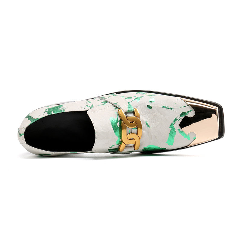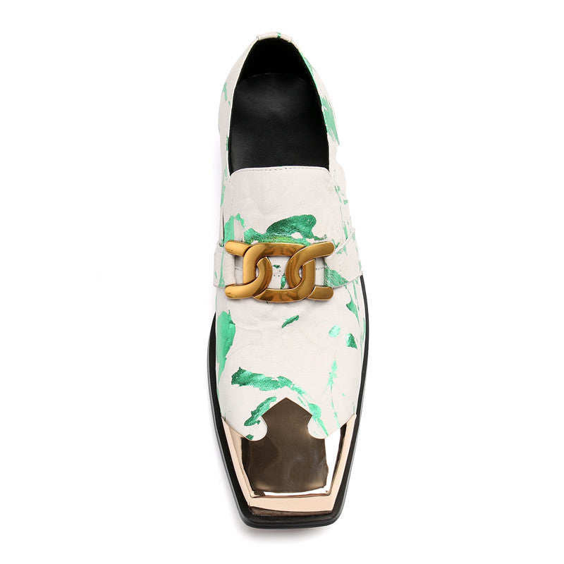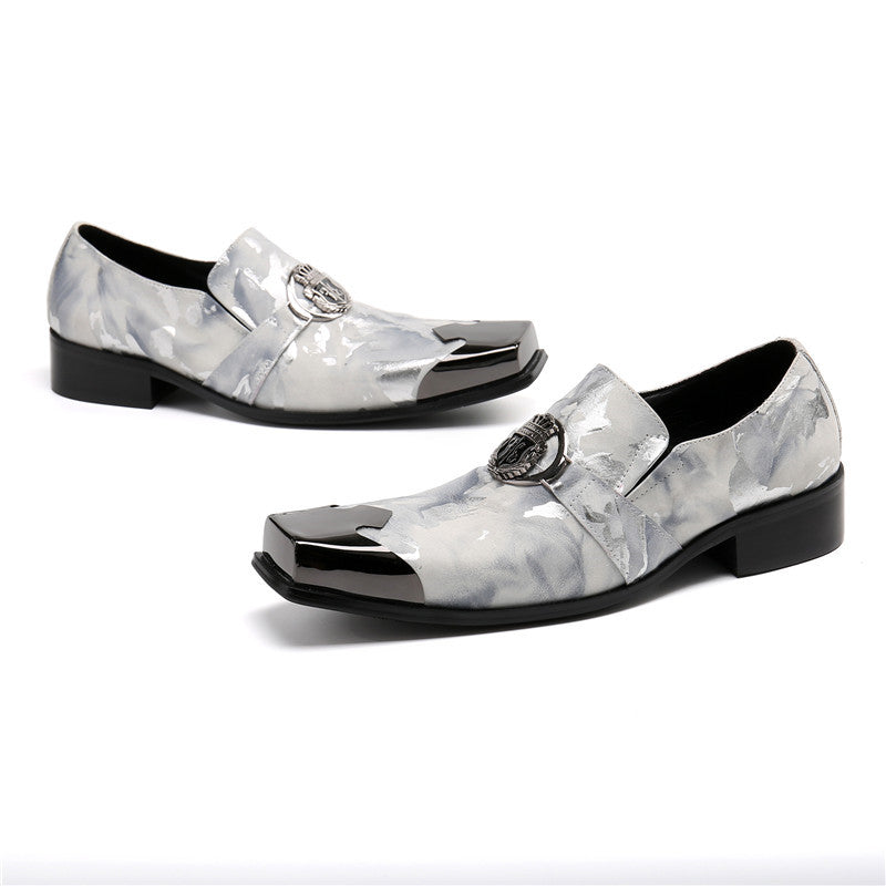 Step out in utmost style by sporting these appealing slip-on oxford shoes with a PUNK?pattern. The leather made brogues for men have a pointed toe shape and have been made using genuine leather material. The full grain leather insole and lining will offer you comfort while the durable rubber outsole takes care of your comfort.
