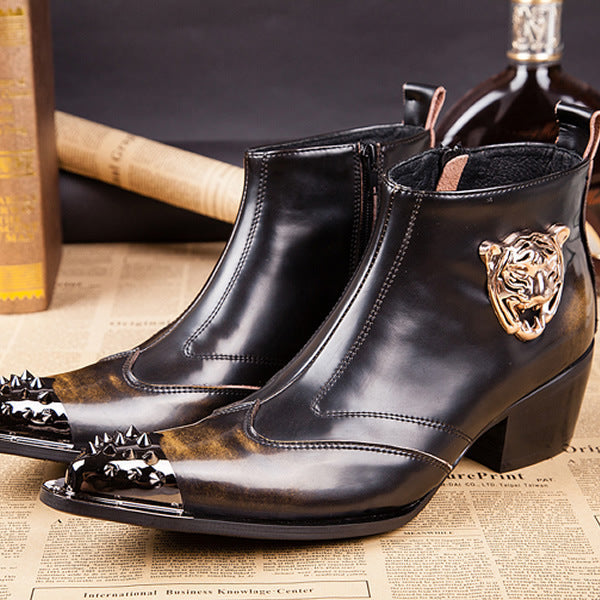 Step out in utmost style by sporting these appealing slip-on Chelsea Boot with a PUNK?pattern. The leather made brogues for men have a pointed toe shape and have been made using genuine leather material. The full grain leather insole and lining will offer you comfort while the durable rubber outsole takes care of your comfort.
