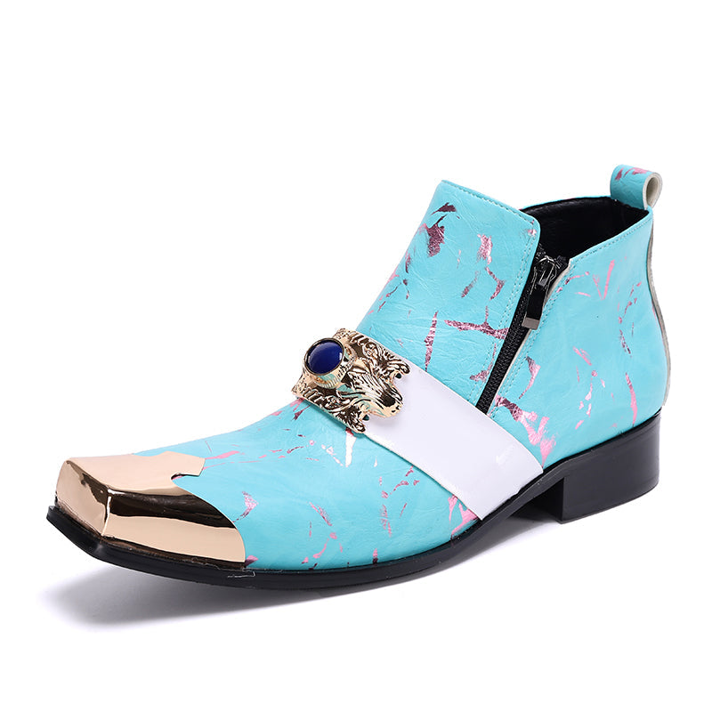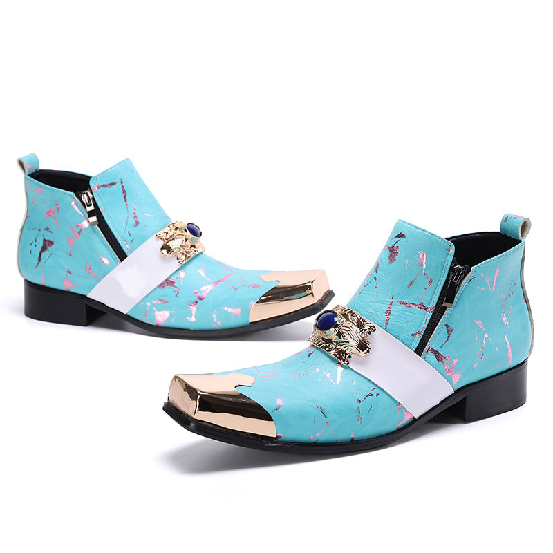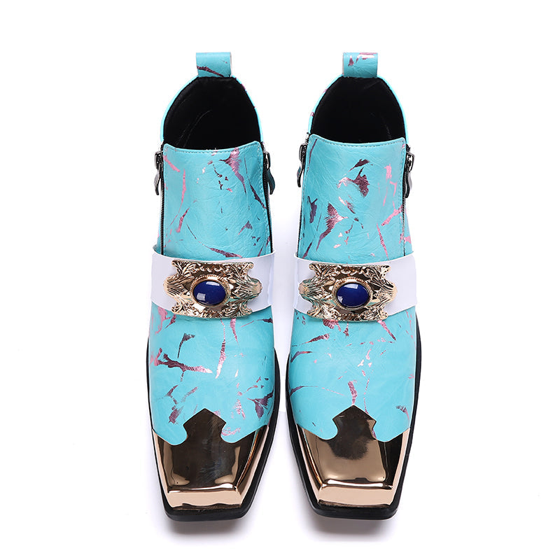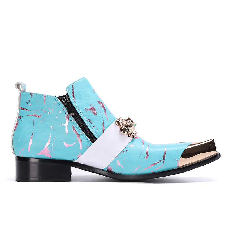 Step out in utmost style by sporting these appealing slip-on?Party Chelsea Boot with a PUNK?pattern. The leather made brogues for men have a pointed toe shape and have been made using genuine leather material. The full grain leather insole and lining will offer you comfort while the durable rubber outsole takes care of your comfort.
