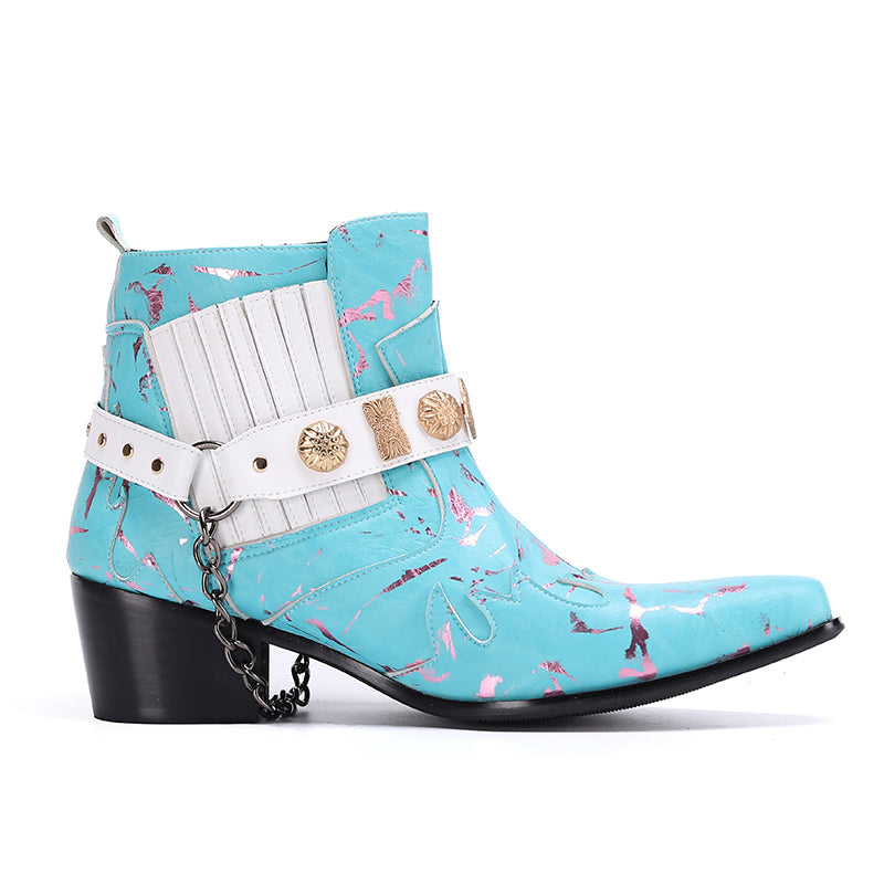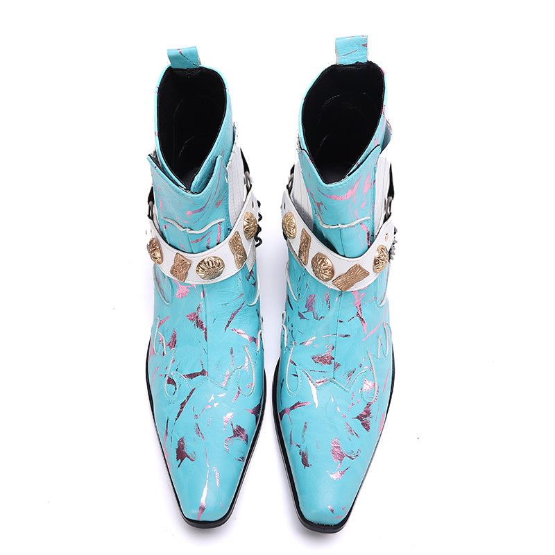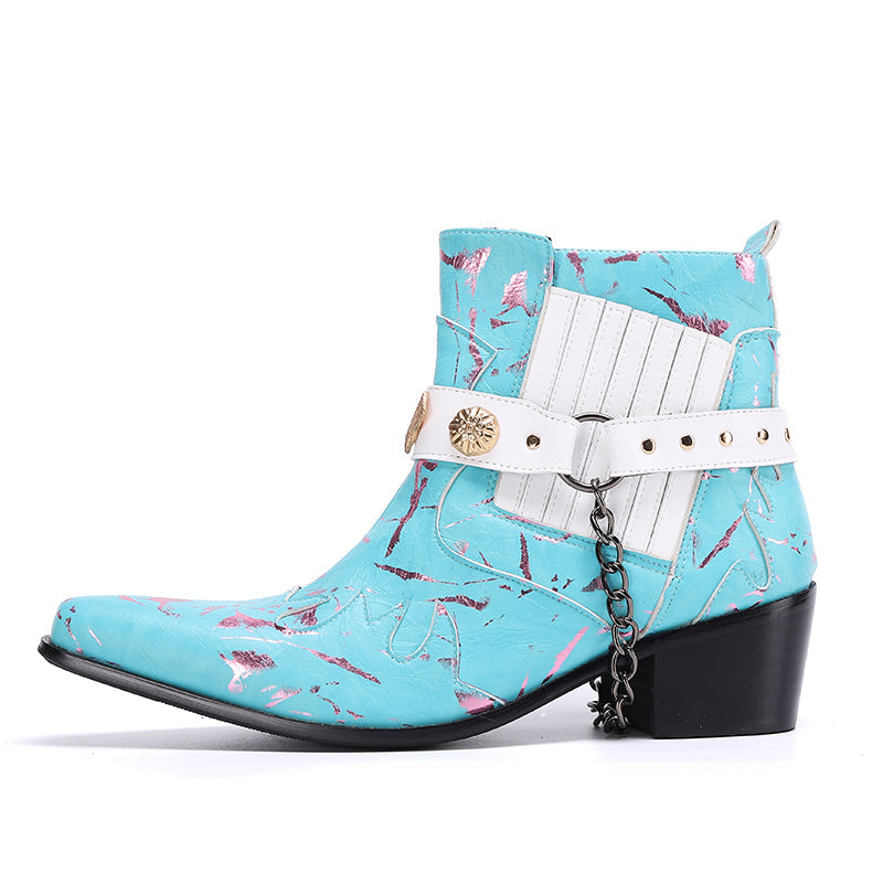 Step out in utmost style by sporting these appealing slip-on?Party Chelsea Boot with a PUNK?pattern. The leather made brogues for men have a pointed toe shape and have been made using genuine leather material. The full grain leather insole and lining will offer you comfort while the durable rubber outsole takes care of your comfort.
