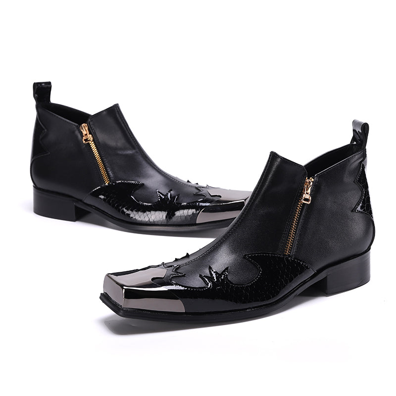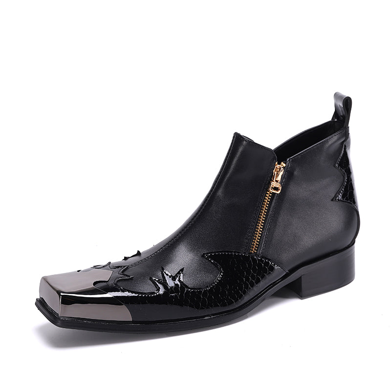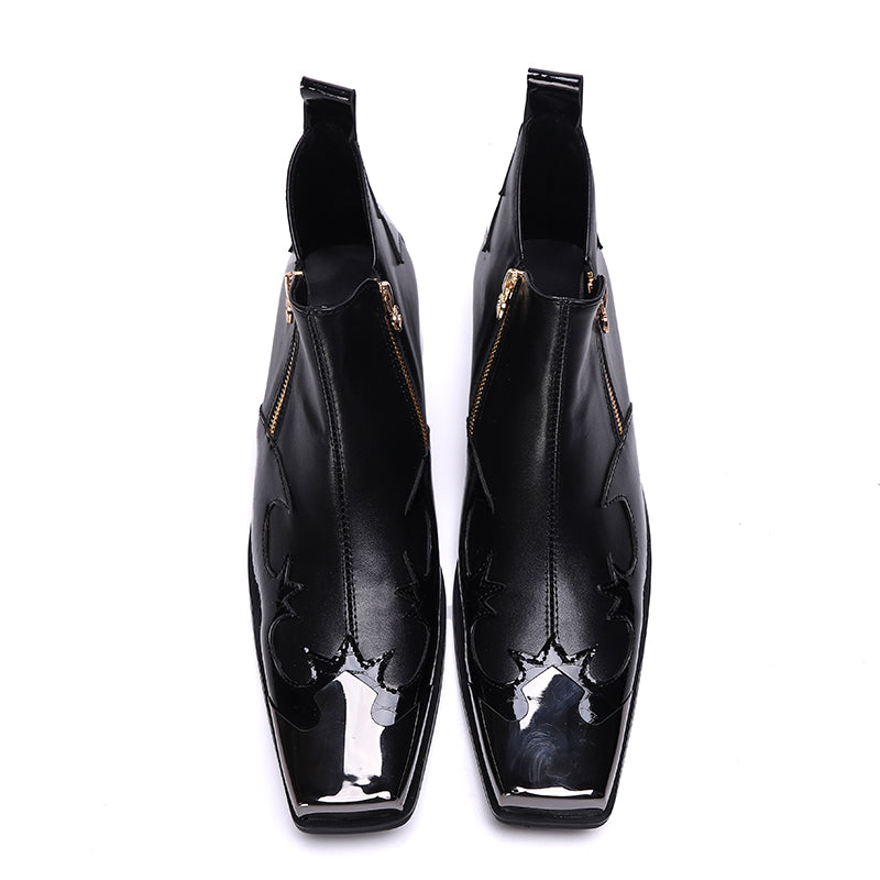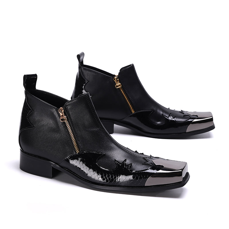 Step out in utmost style by sporting these appealing slip-on?Party Chelsea Boot with a PUNK?pattern. The leather made brogues for men have a pointed toe shape and have been made using genuine leather material. The full grain leather insole and lining will offer you comfort while the durable rubber outsole takes care of your comfort.