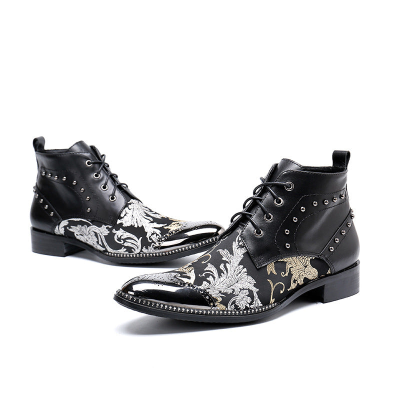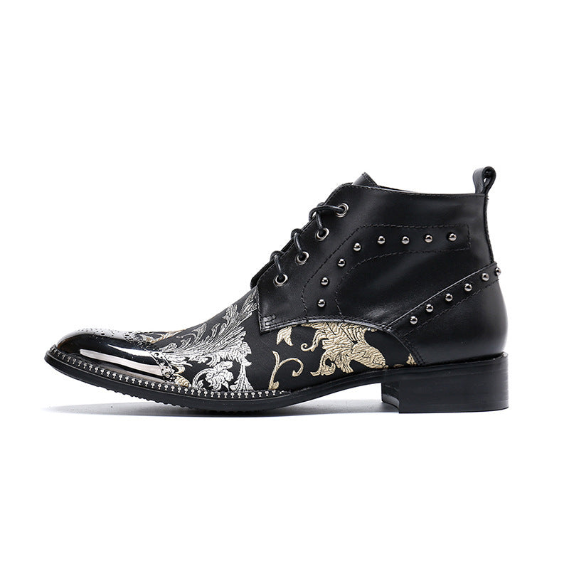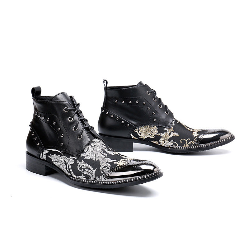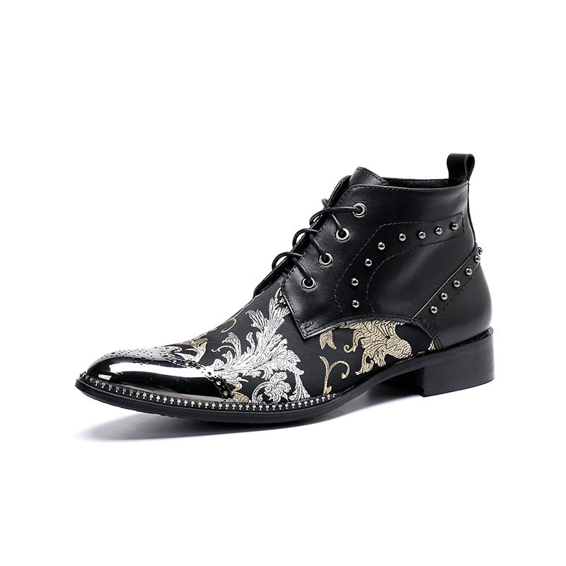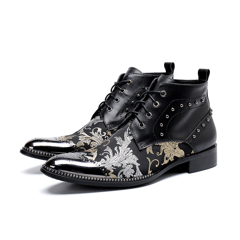 Step out in utmost style by sporting these appealing slip-on?Party Chelsea Boot with a PUNK?pattern. The leather made brogues for men have a pointed toe shape and have been made using genuine leather material. The full grain leather insole and lining will offer you comfort while the durable rubber outsole takes care of your comfort.