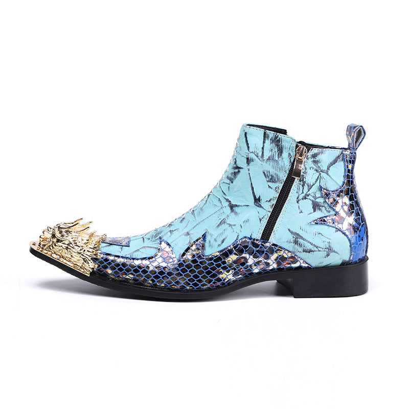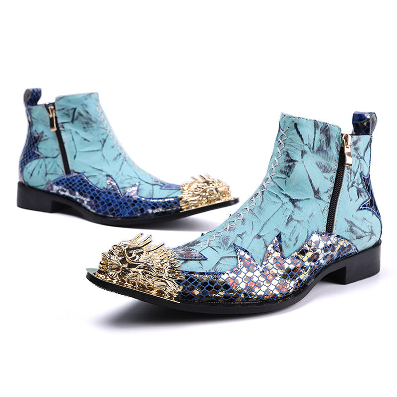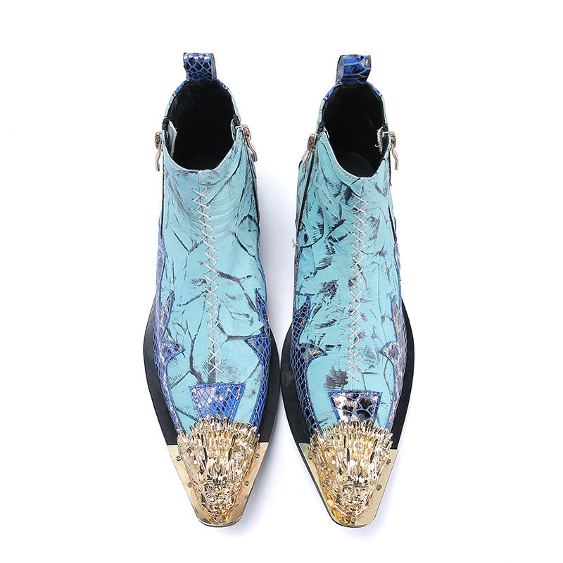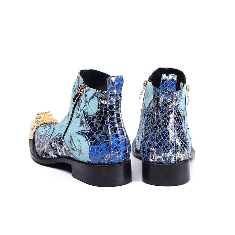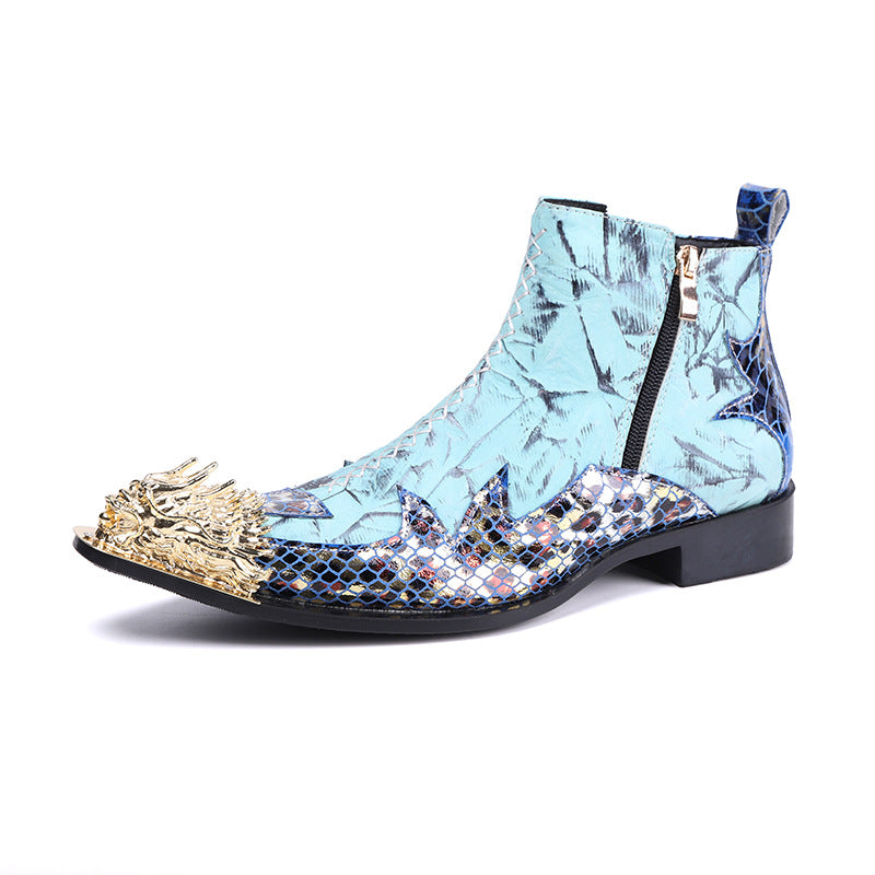 Step out in utmost style by sporting these appealing slip-on?Party Chelsea Boot with a PUNK?pattern. The leather made brogues for men have a pointed toe shape and have been made using genuine leather material. The full grain leather insole and lining will offer you comfort while the durable rubber outsole takes care of your comfort.