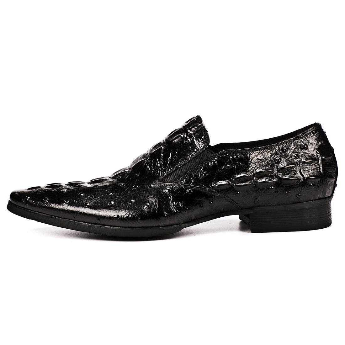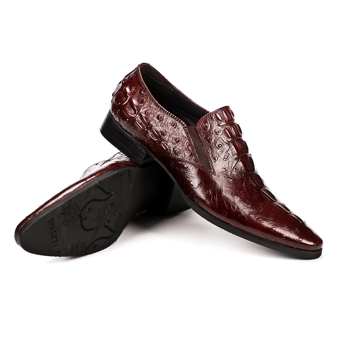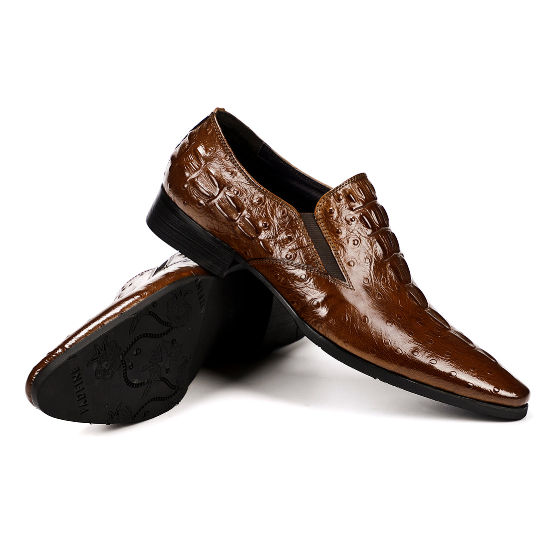 Step out in utmost style by sporting these appealing slip-on oxford shoes with a crocodile pattern. The leather made brogues for men have a pointed toe shape and have been made using genuine leather material. The full grain leather insole and lining will offer you comfort while the durable rubber outsole takes care of your comfort.