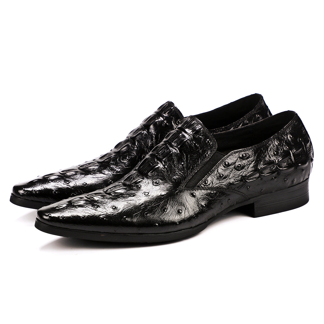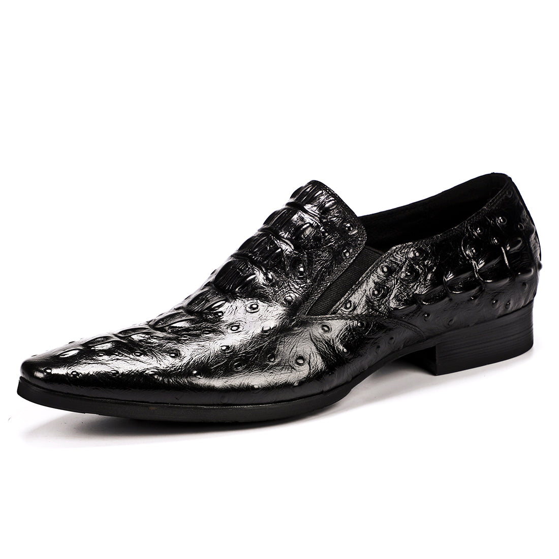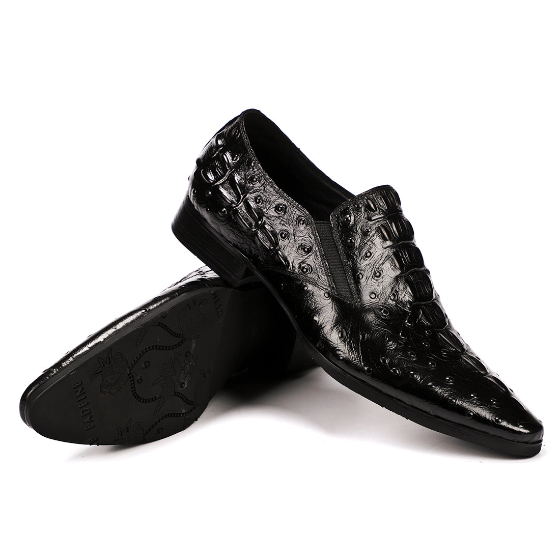 Step out in utmost style by sporting these appealing slip-on oxford shoes with a crocodile pattern. The leather made brogues for men have a pointed toe shape and have been made using genuine leather material. The full grain leather insole and lining will offer you comfort while the durable rubber outsole takes care of your comfort.