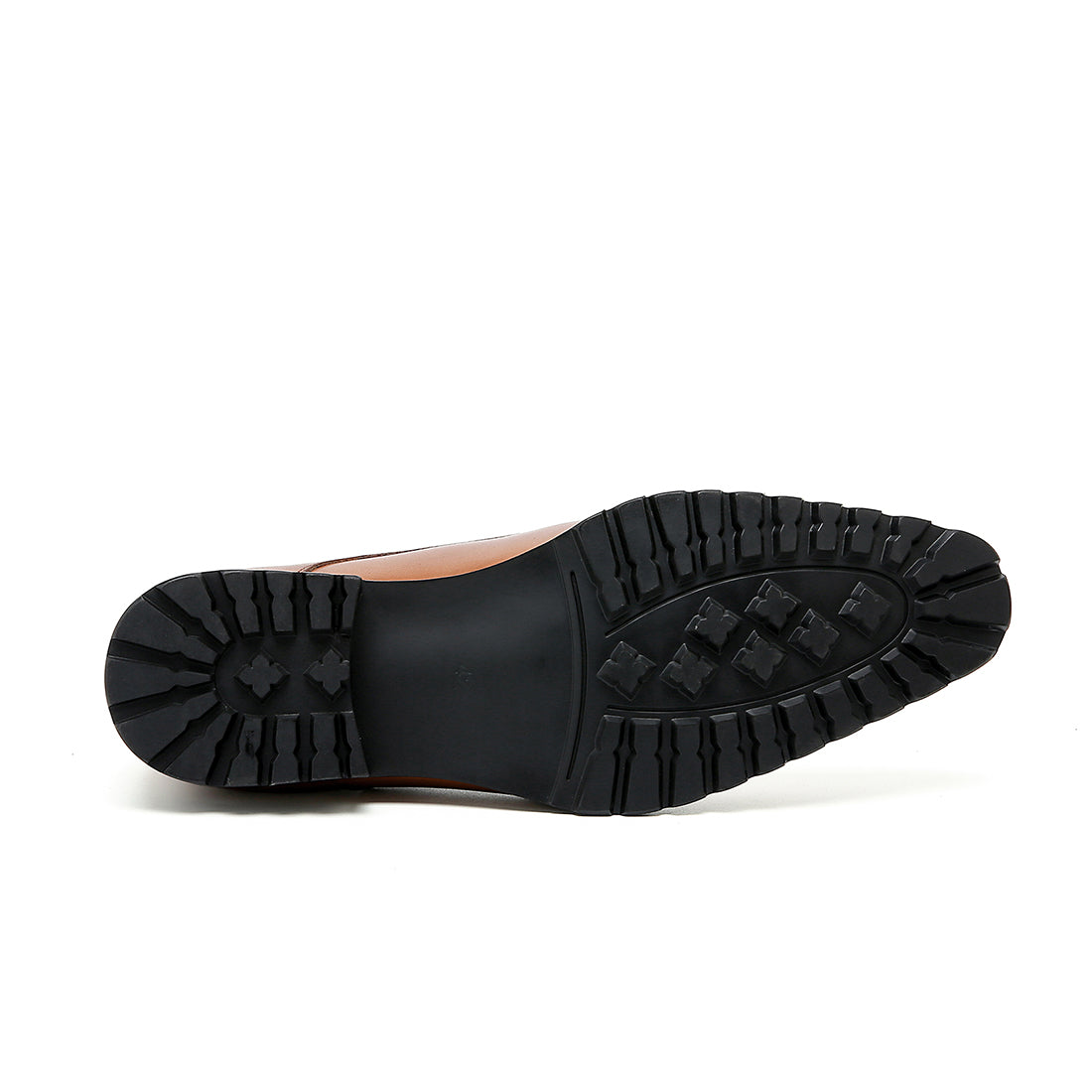 Step out in utmost style by sporting these appealing slip-on oxford shoes with a crocodile pattern. The leather made brogues for men have a pointed toe shape and have been made using genuine leather material. The full grain leather insole and lining will offer you comfort while the durable rubber outsole takes care of your comfort.