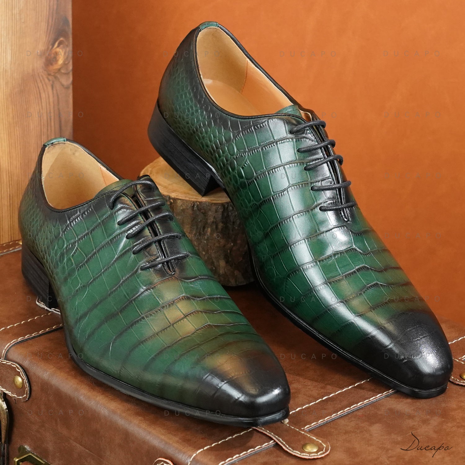 Ducapo Black Striped Green Oxfords